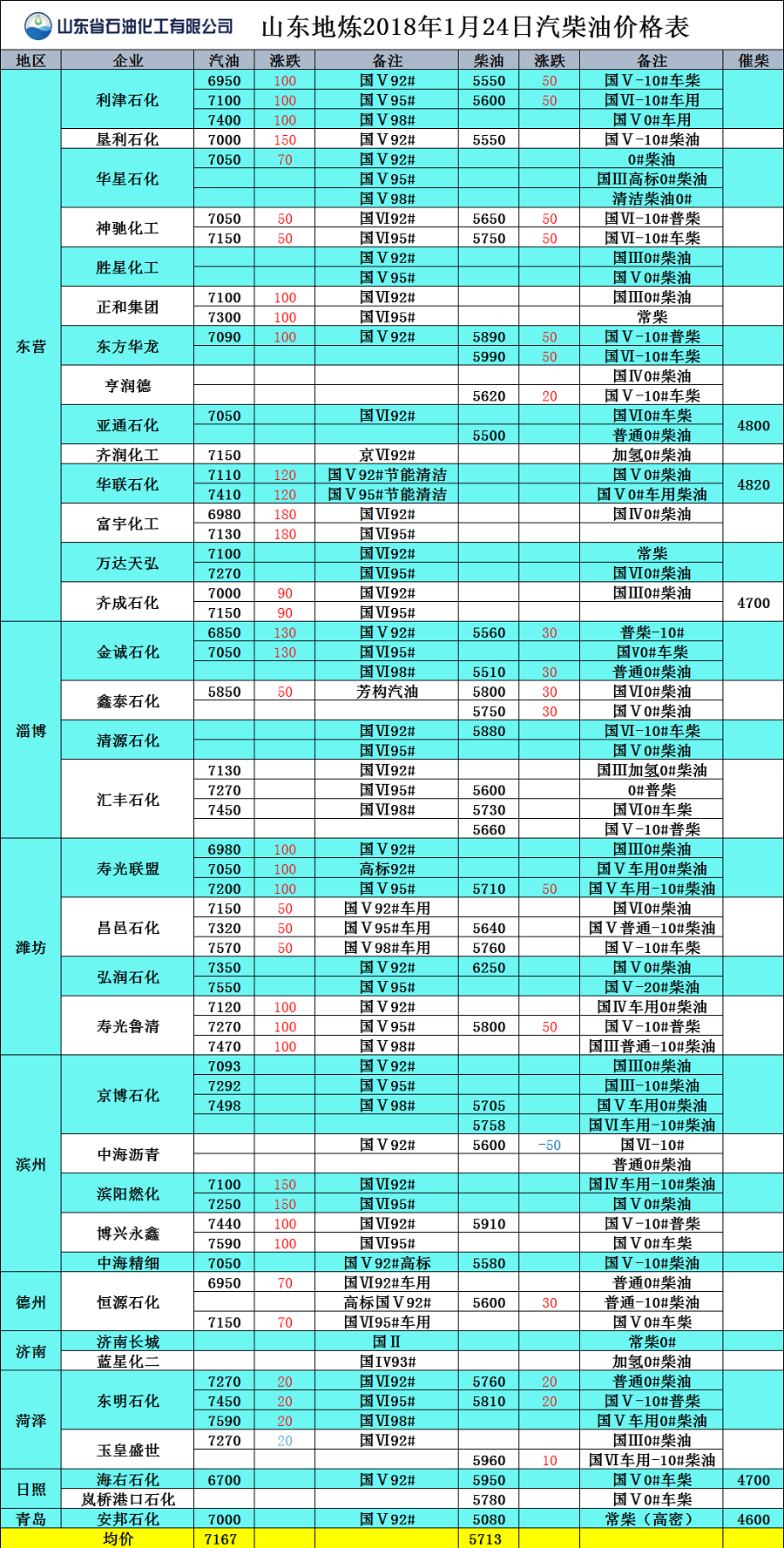 山東地?zé)?017年1月24日汽柴油價(jià)格表
