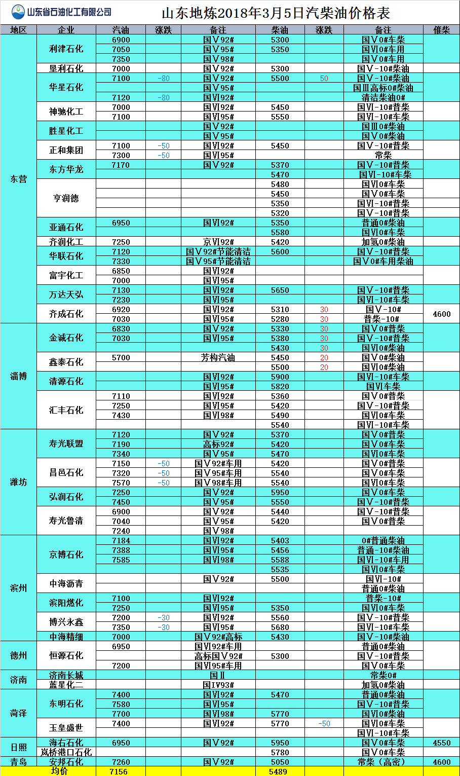 山東地?zé)?018年3月5日汽柴油價(jià)格表