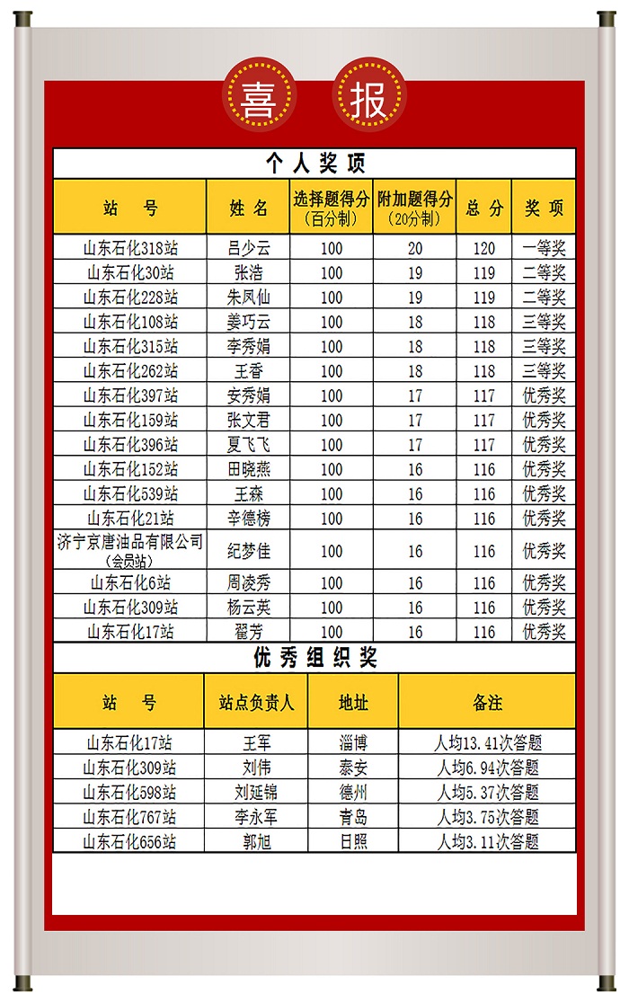 1月9日,山東石化“培訓(xùn)回頭看”知識競賽圓滿落幕。本次知識競賽面向山東石化各加盟站點展開,形式推陳出新,采用線上答題形式進(jìn)行比拼。競賽共有779人參與,獲得答卷1364份。經(jīng)教官評委打分,最終有16人獲個人獎,5個站點獲得優(yōu)秀組織獎。