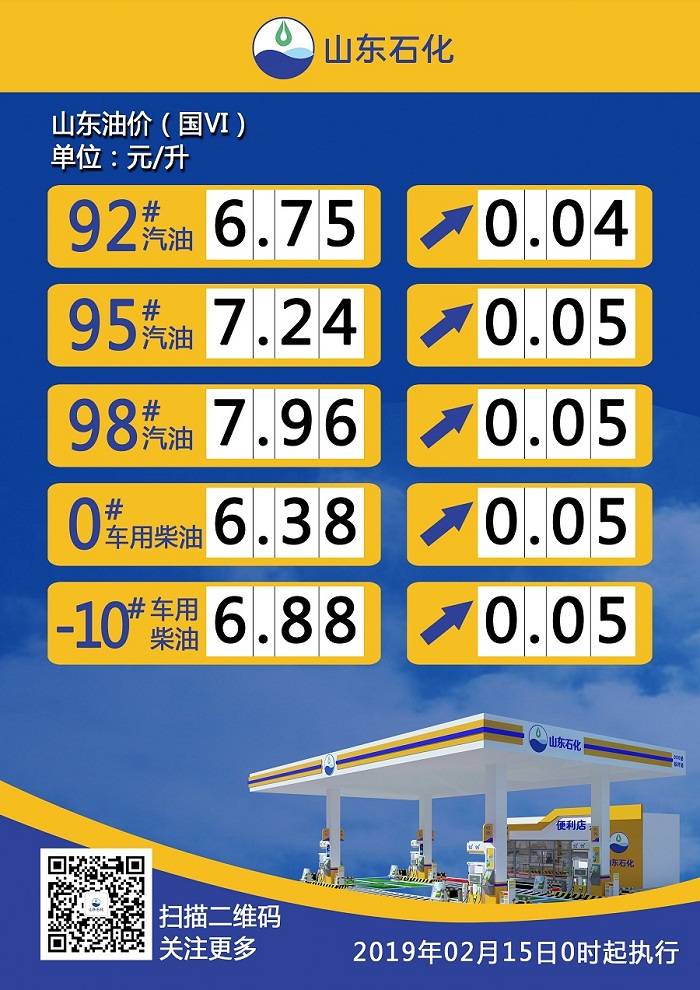【調價公示】山東省汽、柴油最新零售指導價(190215)