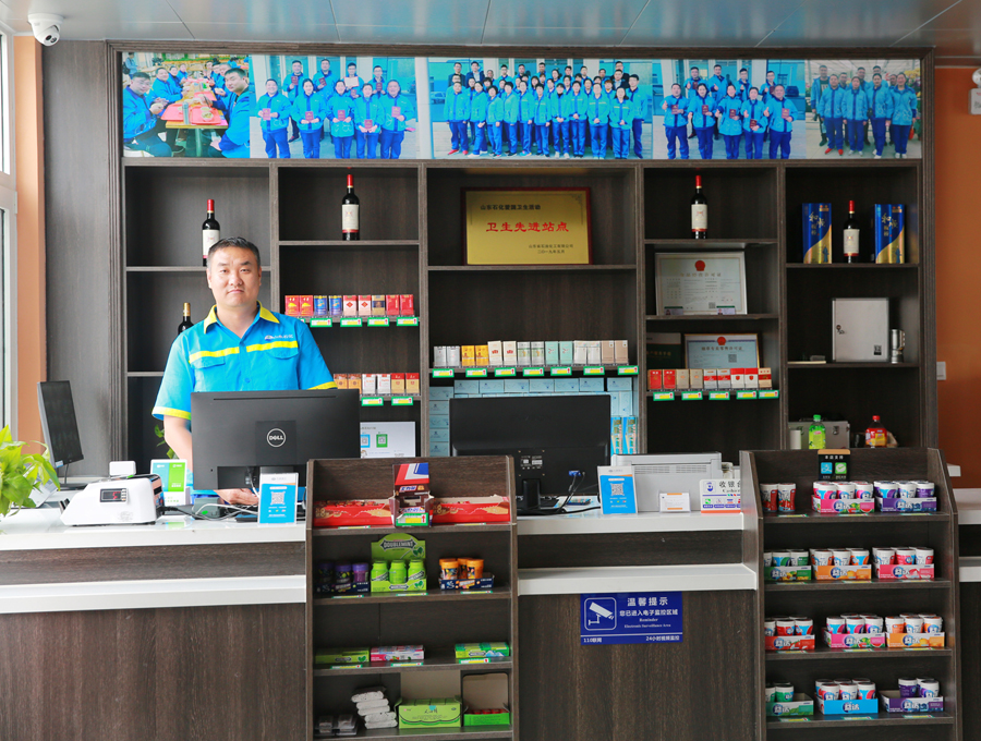 加盟后,在品牌形象方面,站點按照山東石化加油站VI形象要求對罩棚、營業(yè)廳等進行全面裝修。為保證裝修質(zhì)量,山東石化裝修設(shè)計人員進駐站點,跟進監(jiān)督工程進度。站點經(jīng)過統(tǒng)一形象升級后,站容站貌煥然一新。