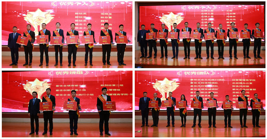經(jīng)營管理商學(xué)院院長邵金光宣讀2019年度表彰決定。2019年共評出19個獎項,其中優(yōu)秀團(tuán)隊獎8項、優(yōu)秀班組3項、優(yōu)秀個人獎7項,共有9個團(tuán)隊小組及17名員工憑借突出貢獻(xiàn)、驕人業(yè)績以及優(yōu)異工作表現(xiàn)獲得獎項,相關(guān)領(lǐng)導(dǎo)予以頒獎。
