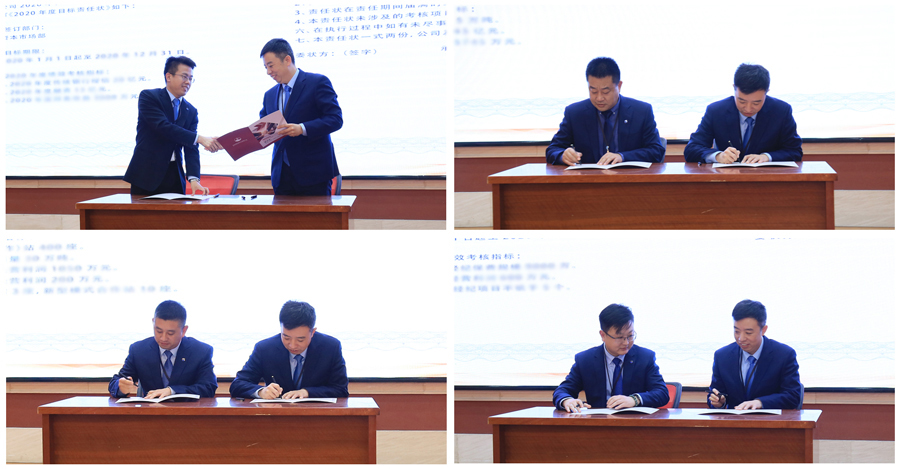 為了確保完成全年工作目標(biāo),統(tǒng)一思想認(rèn)識,理清工作思路,明確責(zé)任目標(biāo),財務(wù)風(fēng)控部總監(jiān)李作江、能化產(chǎn)品經(jīng)營部負(fù)責(zé)人李建強(qiáng)、加盟合作事業(yè)部總經(jīng)理趙振峰、融泰保險經(jīng)紀(jì)總經(jīng)理劉龍分別與山東石化董事長兼總經(jīng)理祝偉簽訂2020年責(zé)任狀。