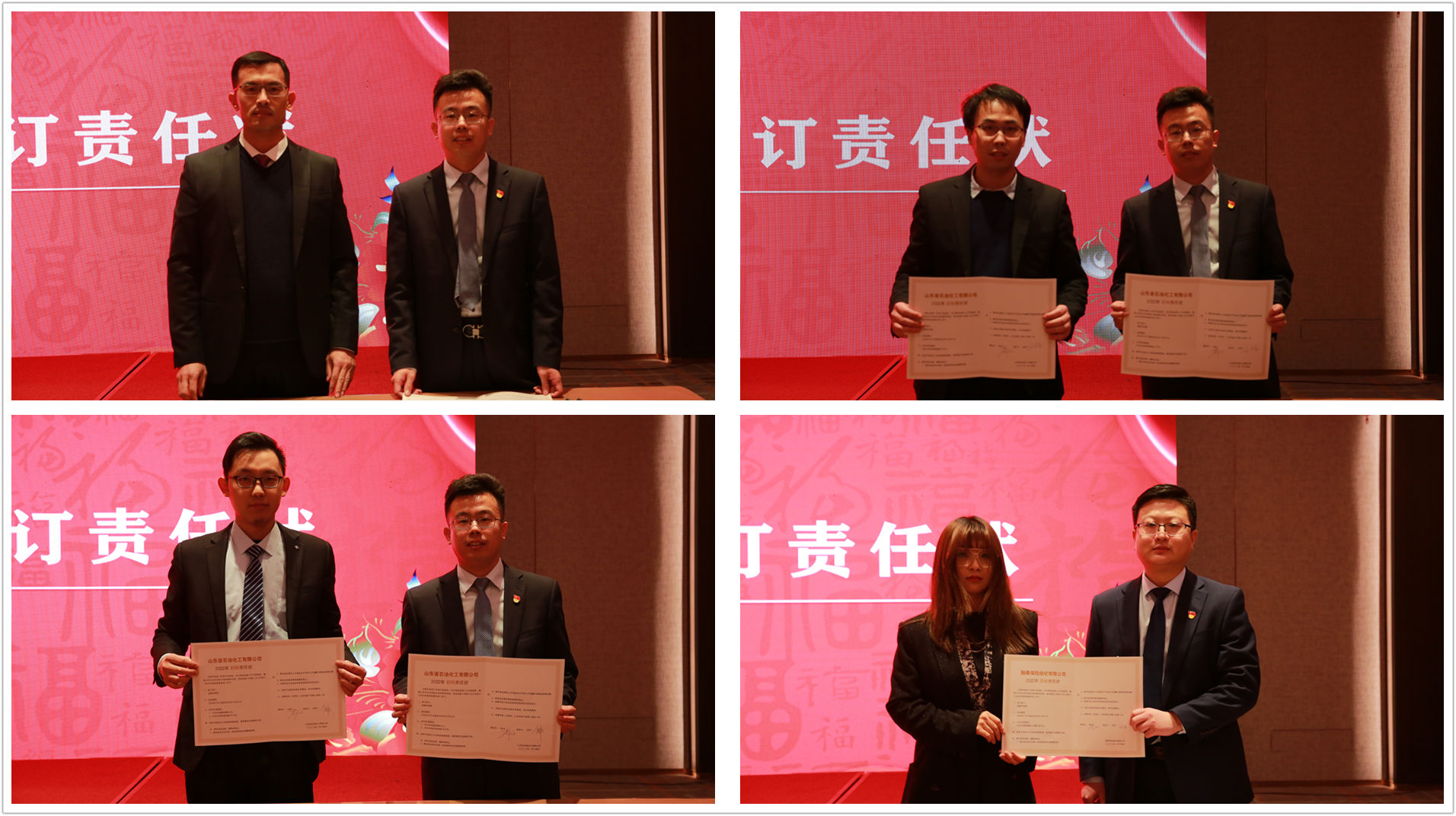 山東石化總經(jīng)理李作江、融泰保險(xiǎn)經(jīng)紀(jì)總經(jīng)理劉龍,分別上臺(tái)與各業(yè)務(wù)部門簽署2022年目標(biāo)責(zé)任書。