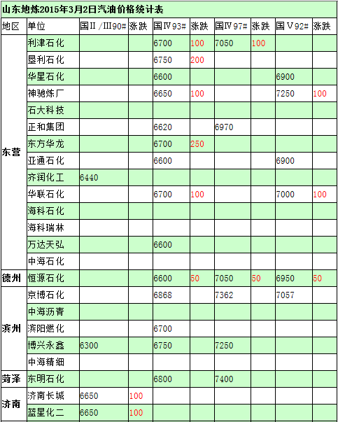2015年3月2日山東地?zé)挷裼蛢r(jià)格