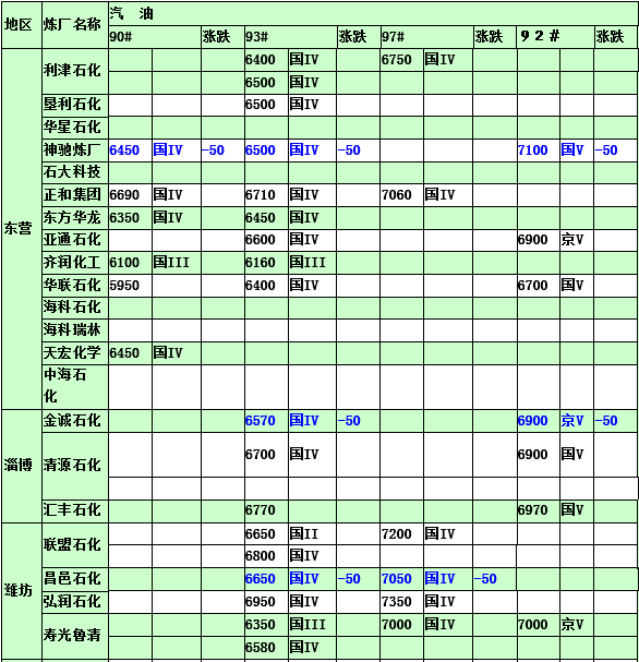 國內(nèi)煉廠2015年3月9日汽柴油價格表