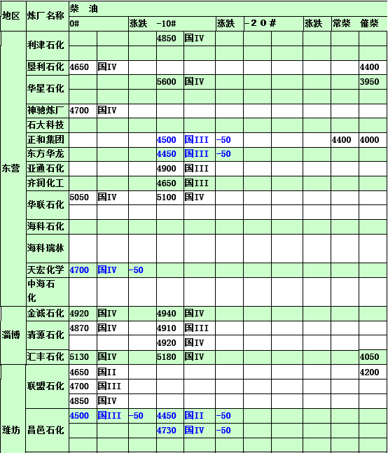國(guó)內(nèi)煉廠2015年3月17日汽柴油價(jià)格表