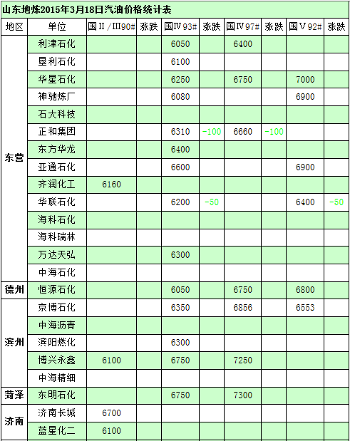 國內(nèi)煉廠2015年3月17日汽柴油價(jià)格表