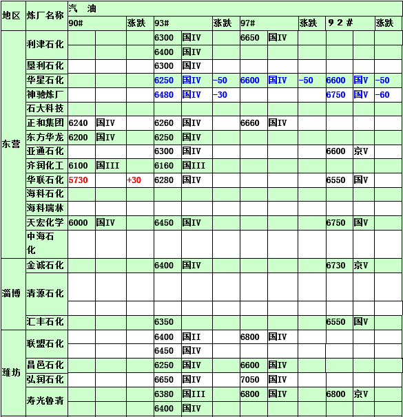 國內(nèi)煉廠2015年4月2日汽柴油價格表