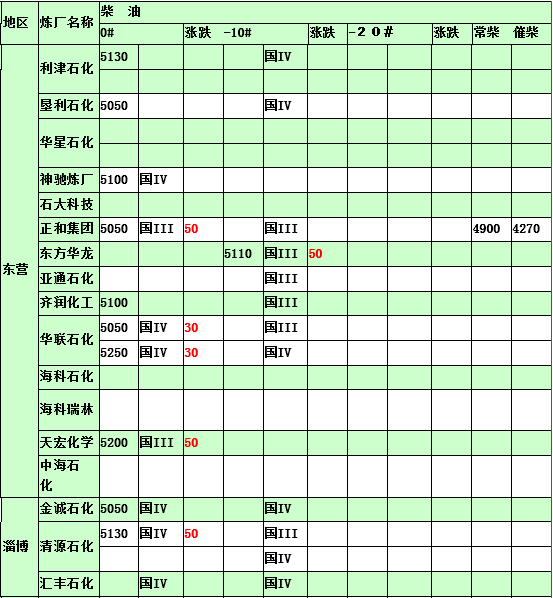2015年4月17日山東地煉柴油價格