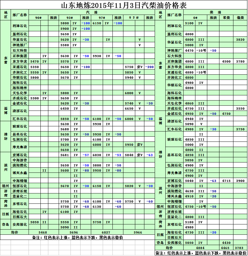 2015年11月3日山東地?zé)捚裼蛢r(jià)格表