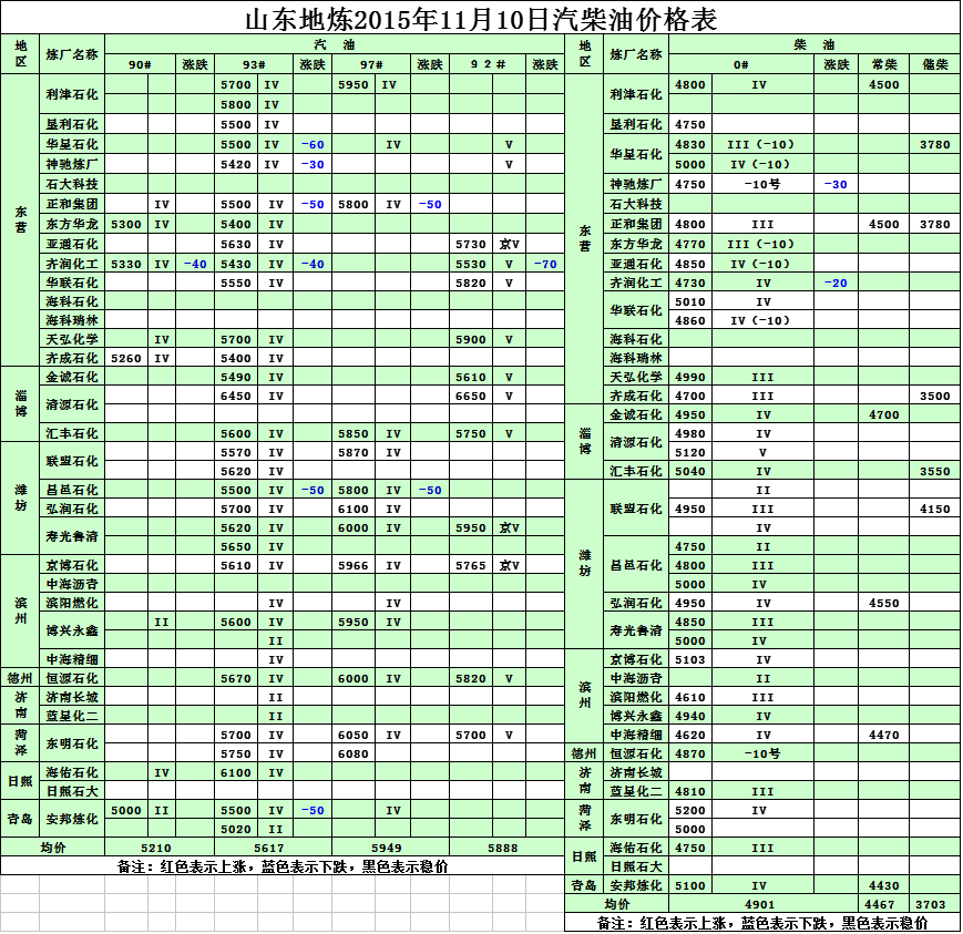 2015年11月5日山東地?zé)捚裼蛢r(jià)格表