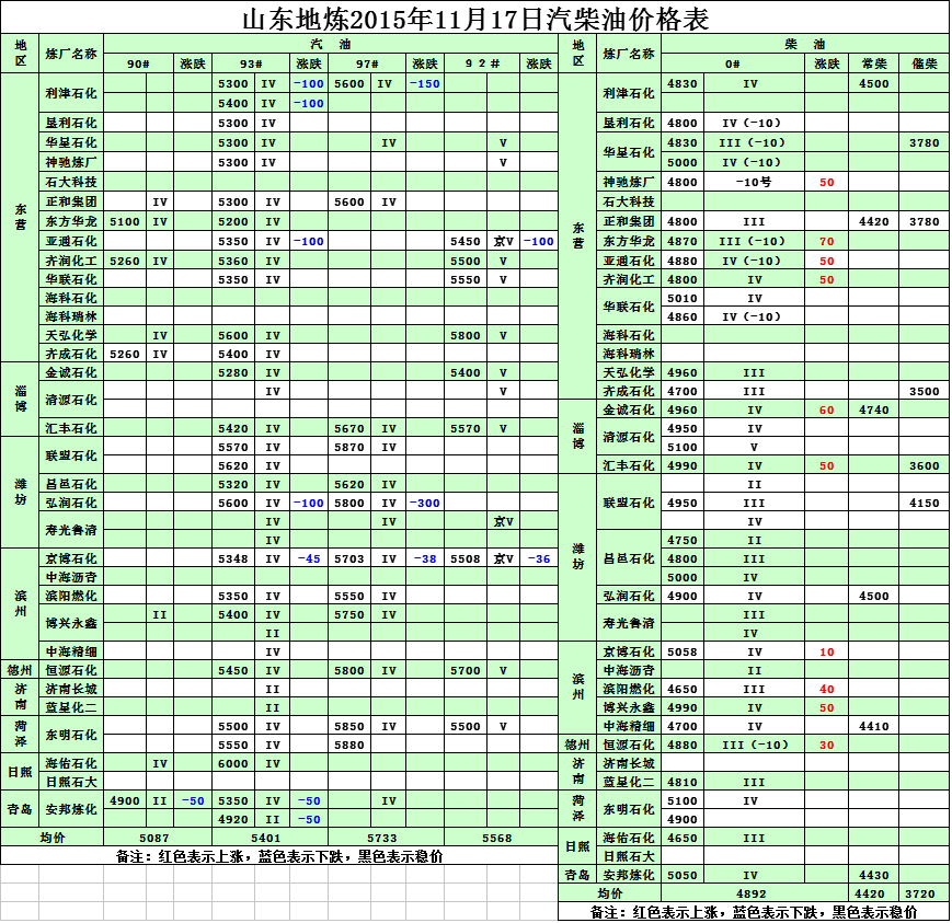 2015年11月17日山東地?zé)捚裼蛢r格表