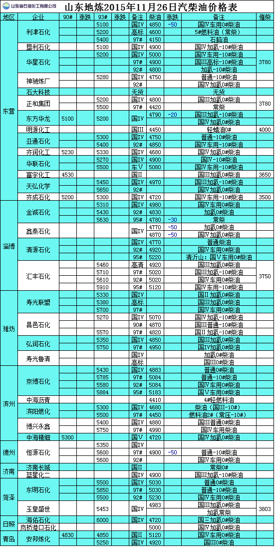 2015年11月26日山東地?zé)捚裼蛢r格表
