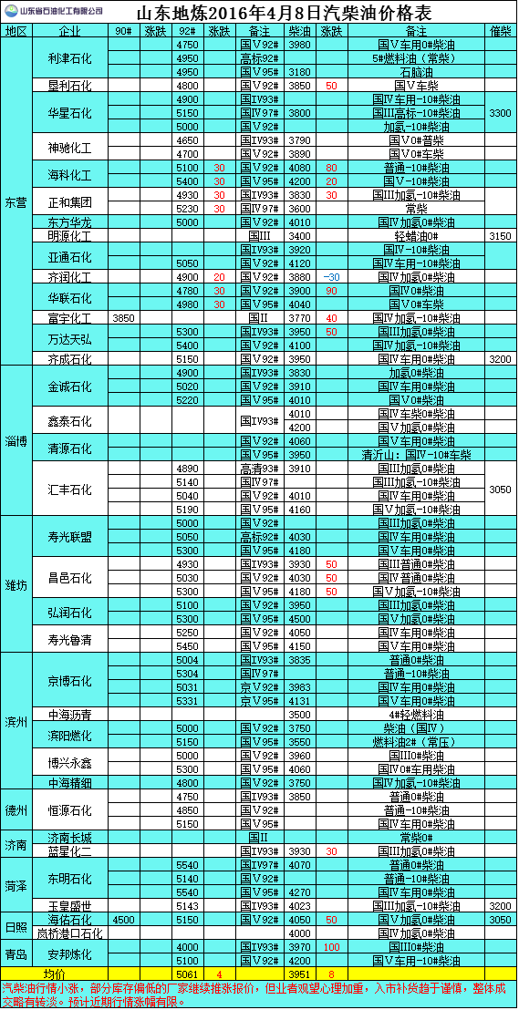 2016年4月8日山東地?zé)捚裼蛢r(jià)格表