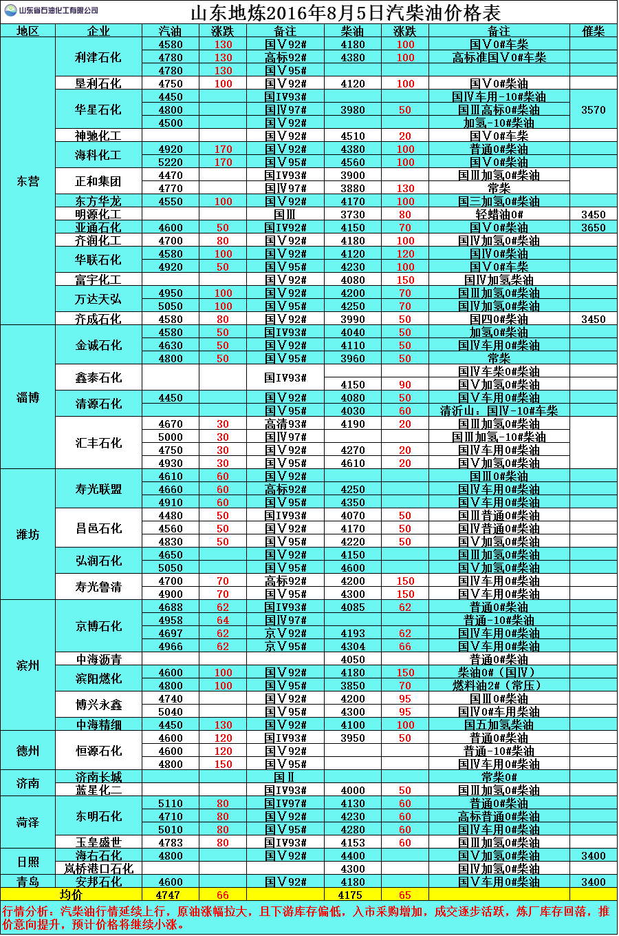 8月5日山東地?zé)捚裼蛢r(jià)格