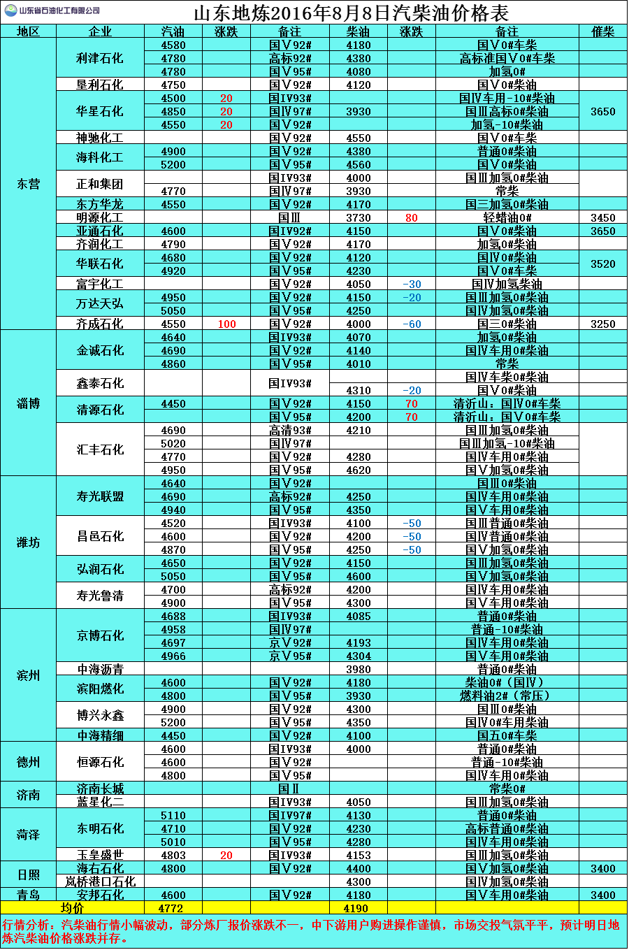 8月8日山東地?zé)捚裼蛢r格