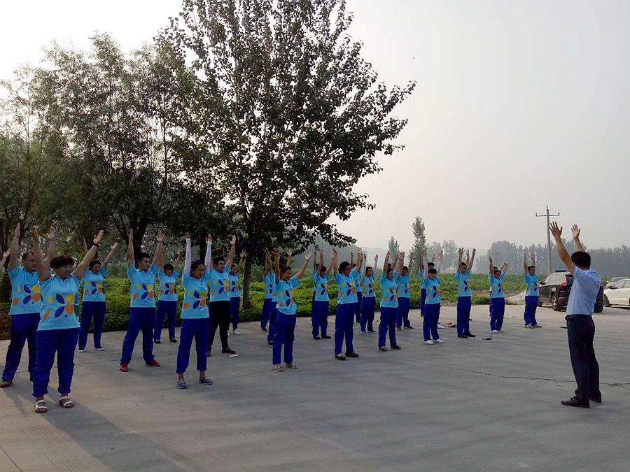 學(xué)員們?cè)谂嘤?xùn)基地做早操,做拓展游戲,鍛煉身體,熔煉團(tuán)隊(duì)。
