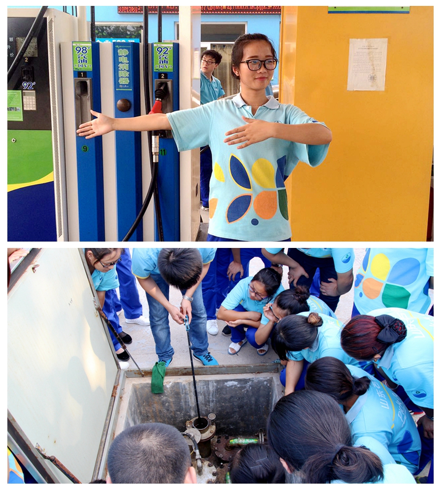 理論課上,學(xué)員們學(xué)習(xí)加油七步法和文明服務(wù)用語,現(xiàn)場(chǎng)模擬演練。